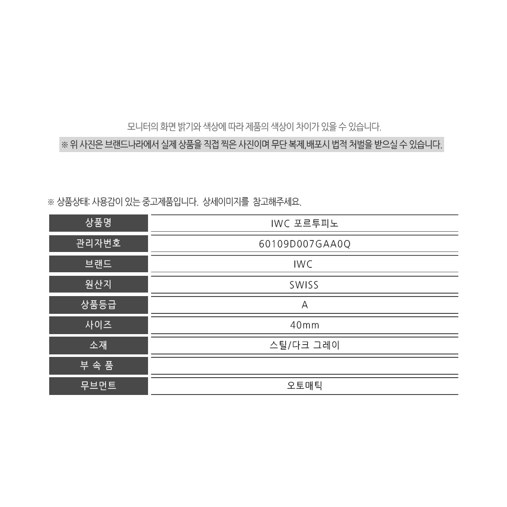 ※ 시계, 주얼리, 액세서리류는 카테고리 특성 상 반품이 불가 한 점 꼭 확인 부탁 드립니다.