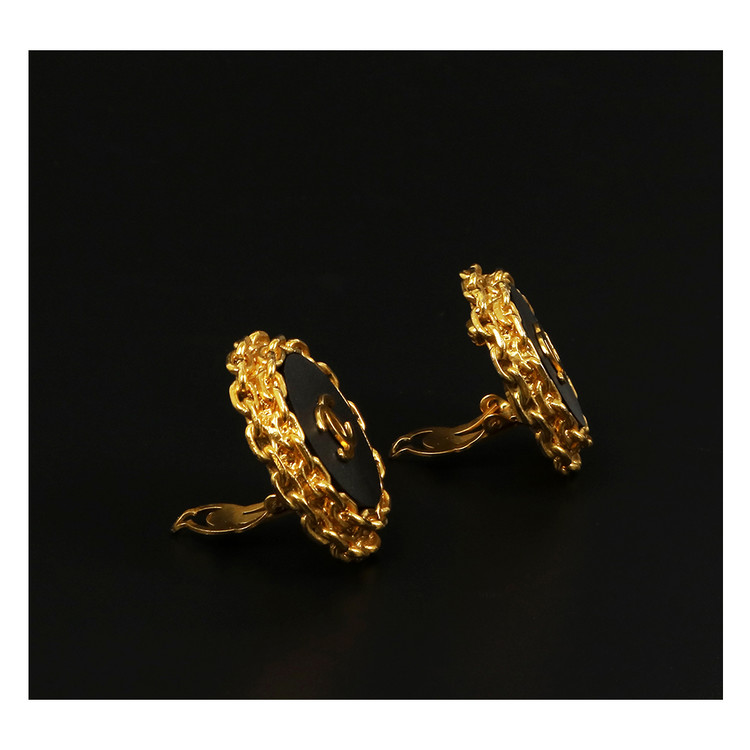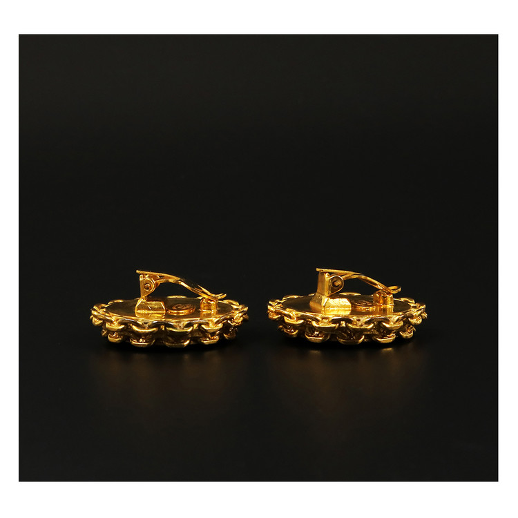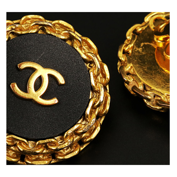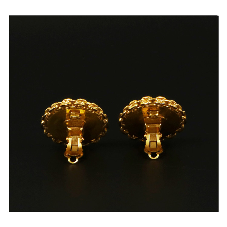 CHANEL 샤넬 버튼 클립온 이어링 *AB